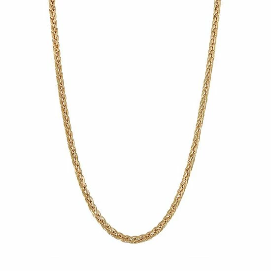 This fashionable 10k gold wheat chain necklace adds distinctive style to any outfit.