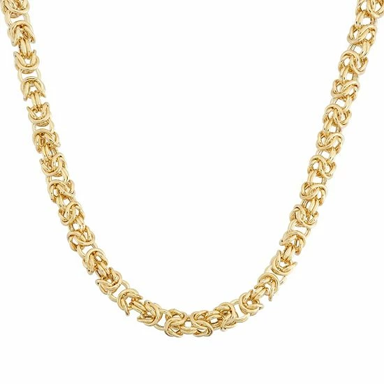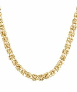 Featuring an intricate Byzantine chain, this 14k gold necklace will add eye-catching beauty to any ensemble.