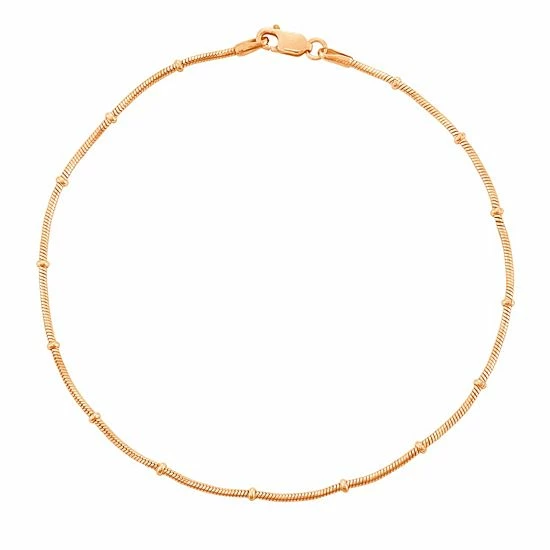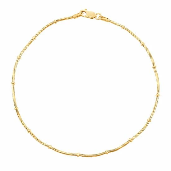 Featuring a sleek snake chain design with beaded accents, this 14k gold over sterling silver anklet offers fashionable flair.