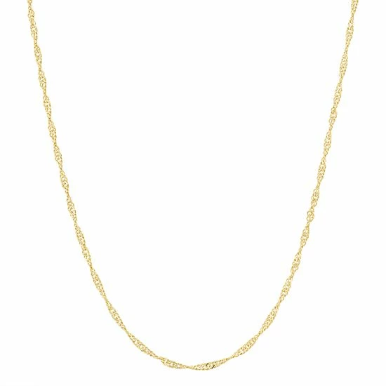 Featuring a Singapore chain design and a unique adjustable closure, this 14k gold-plated silver necklace is a beautifully versatile choice.