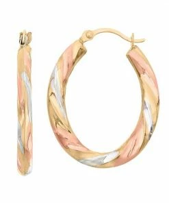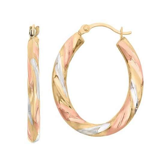 Illuminate your look wearing these beautiful twist oval earrings. A 14k gold tri-tone design gives these hoop earrings extraordinary style.